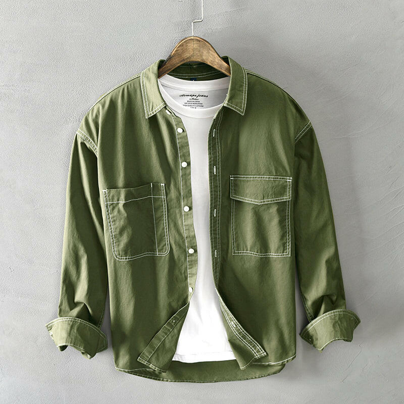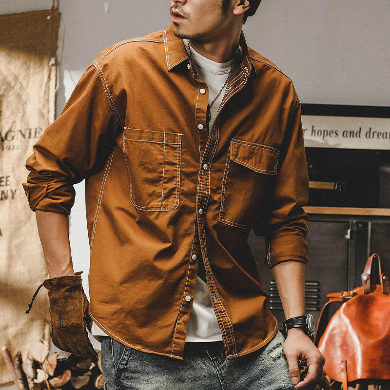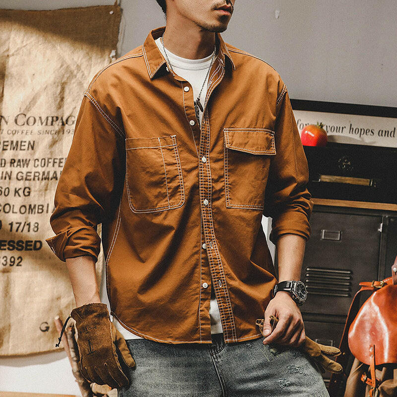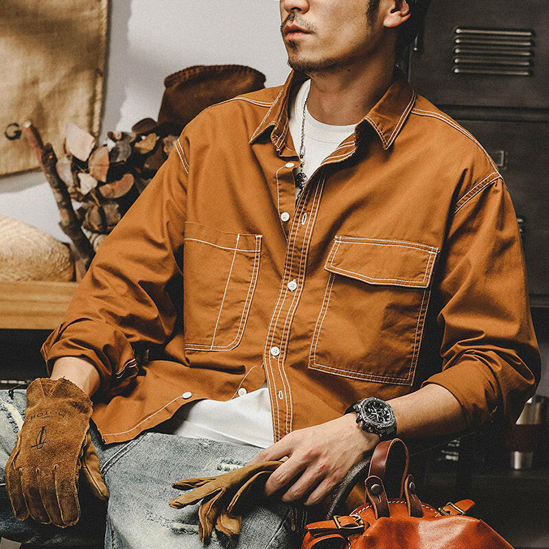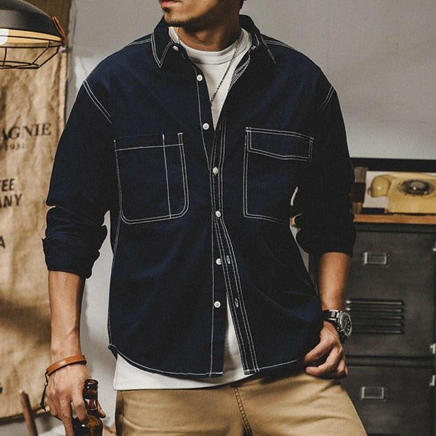 AYATOSHI | シンプルホワイトステッチ長袖シャツ P0107