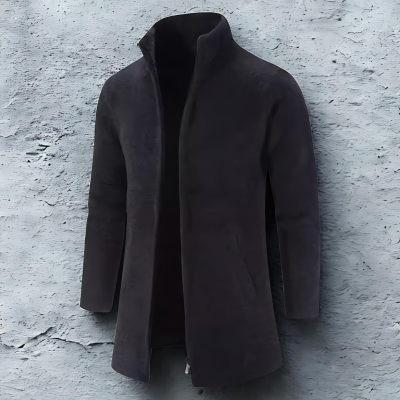 Gaspare | メンズロングコート – リラックスフィット – ストレートカット – スタンドカラー – ソフトウールテクスチャ