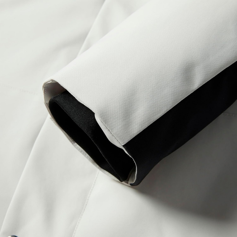このスキーコートは、ウィンタースポーツや雪の中でのアウトドア活動に適しています。フード、ファスナー、実用的なディテールを備え、機能性とスポーティな外観を提供します。