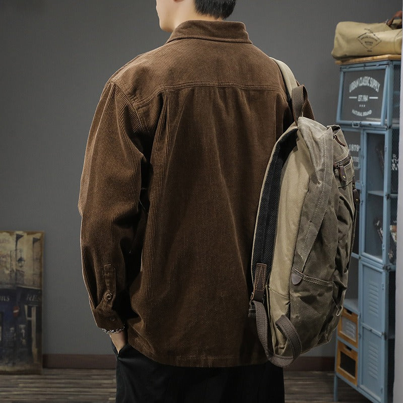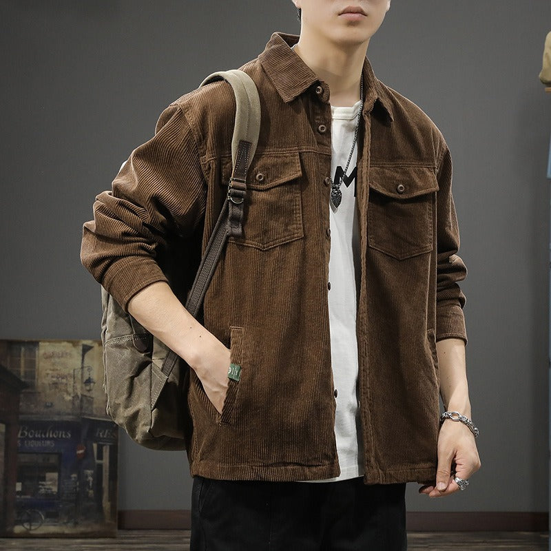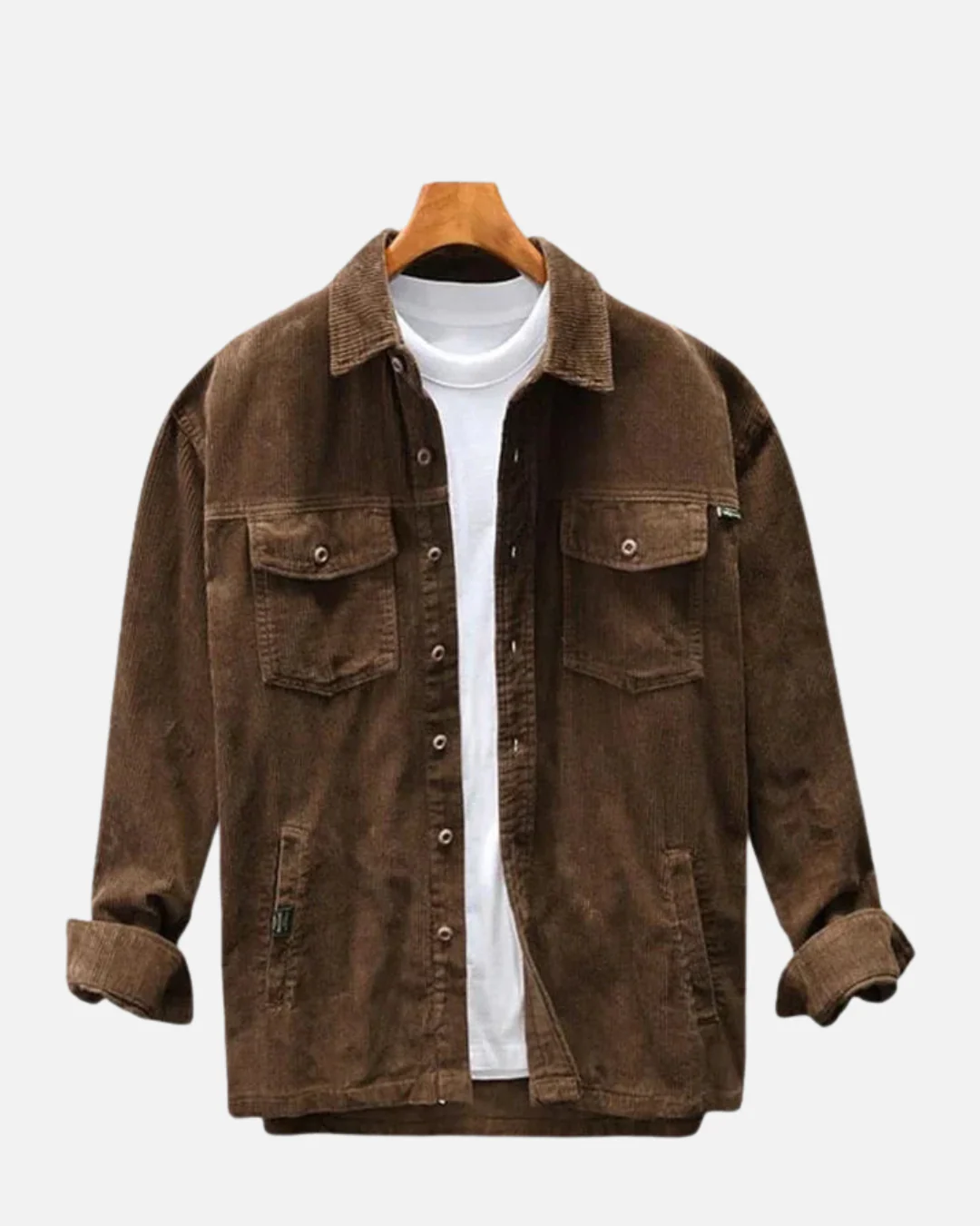 Lino | メンズワークジャケット – コーデュロイ – ゆったりフィット – ボタン – 胸ポケット – カジュアルスタイル